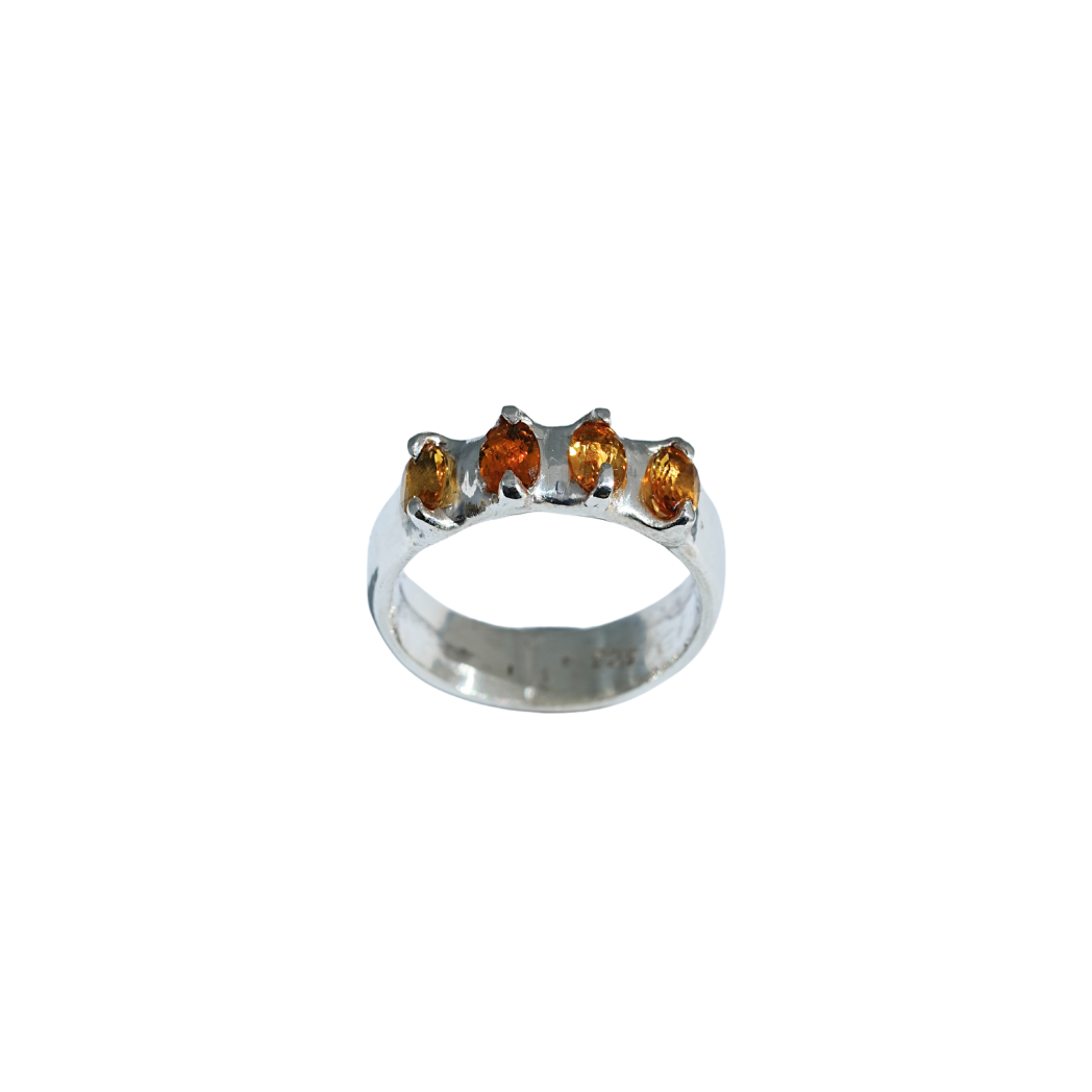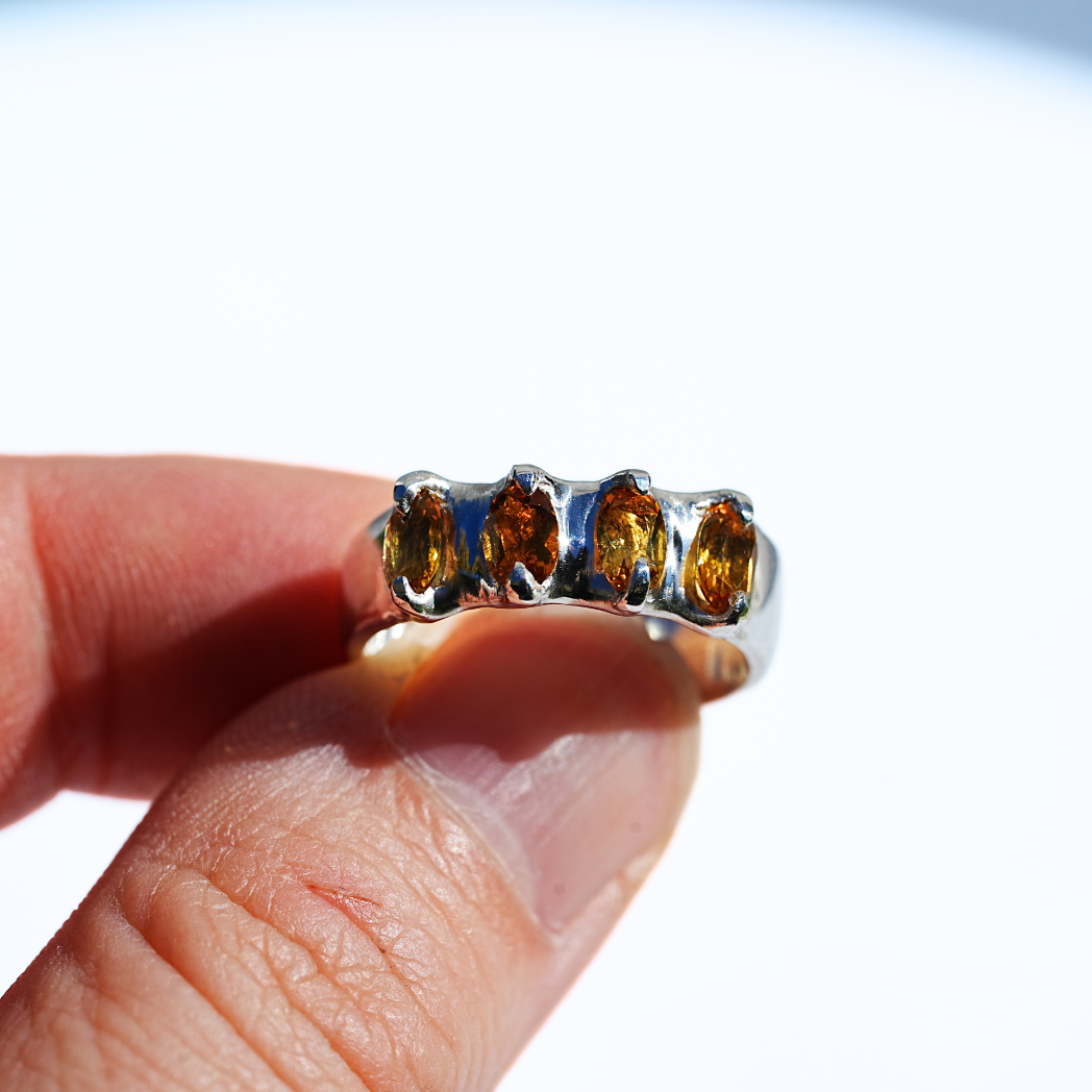 The Marigold Flower Ring features 4 citrines. Handmade using recycled sterling silver by Emi in Melbourne. Inspired by the colours of the Marigold flowers of Nepal.